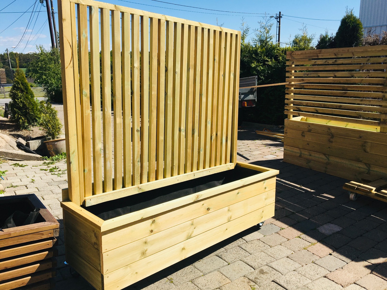 Store Blomsterkasser skjermer for vind, innsyn fra naboer, forbipasserende og støy. Dine blomsterkasser kan bli en glede for deg, dine naboer, forbipasserende og ikke minst dine gjester. Blomsterkasser lages etter ønsket mål og dere kan velge selv om de lages med fiberduk eller plastdunk